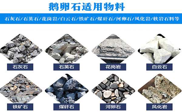 【適用物料】:河卵石、鵝卵石、石灰石、山石、青石、風化砂、玄武巖、花崗巖、石英、輝綠巖、鐵礦石、混合碎石等200多種物料。