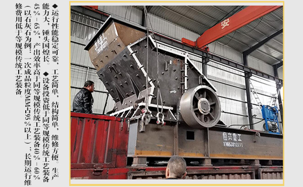 3.液壓開箱制砂機生產自動化程度高,耗能少,破碎比大。