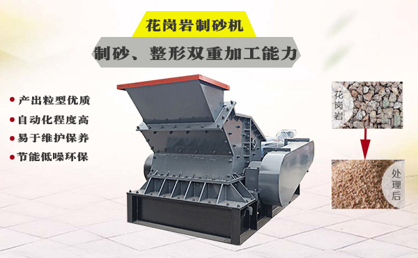 液壓開箱式花崗巖制砂機根據花崗巖的性質或破碎要求,對花崗巖進行不同原理的破碎,如石打石或石打鐵兩種破碎形式,能夠快速高效地將花崗巖制成合格砂石。