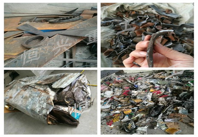 金屬撕碎機主要可將廢舊鋼鐵,油漆桶,彩鋼瓦,機油桶,油漆桶,汽車外殼,摩托車發動機外殼,汽車機油濾芯等硬性金屬物料進行撕碎,金屬撕碎機也可將汽車輪胎,大型PE管材撕碎破碎處理,是一款多功能的金屬破碎撕碎機械。